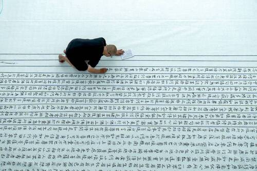 策展人孫松榮指出,《行者》系列不以劇情驅動,而以極慢、極靜的方式引導觀眾深層感知。蔡明亮從劇場到電影,如今更以書法、繪畫與裝置語彙擴展至美術館,讓《行者》成為一種對現代節奏的反思與叩問。他說:「導演以手寫《金剛經》傳達放下執著、觀看內在的創作哲學,是行者系列精神的最佳註解。」