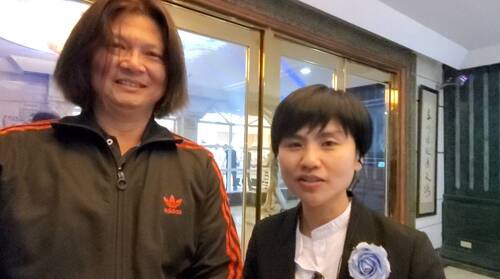 會中,立志中學美容科畢業的校友黃照銓,也帶著剛出版還熱騰騰的新書「剪髮造型與設計實務應用(中)-以粟子頭為例」一書,來獻給前校長江澈,以感謝在立志三年所學,對他日後不管是在輔英科大大學部,還是現在就讀的研究所,都獲益良多。