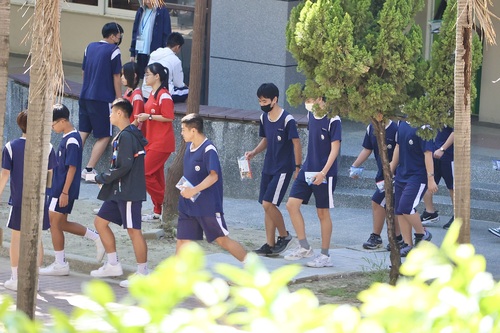 七賢國中校長邱元甫也全程在考生服務區坐陣,帶領由一到二年級學生組成的考生服務隊,提供給所有考生無微不至的貼心服務。