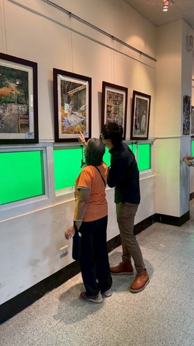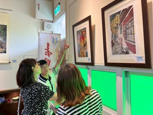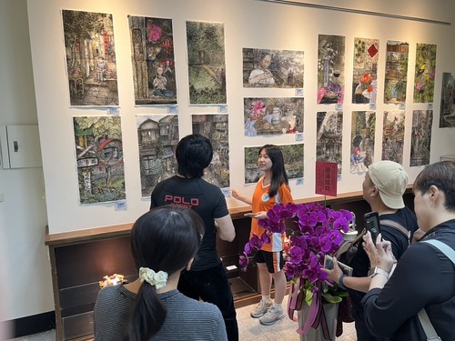 學生張子羿的《深夜麵香》以版畫表達對父親默默付出的敬意,他說:「這是為了記錄我父親深夜煮麵的身影,傳遞家的溫暖。」孫崇賀的《花園的老爺爺》則呈現靜謐日常與自然療癒力,「畫中的每一株植物,都是希望與平靜的象徵。」