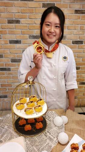 本屆參賽團隊由王先正、陳豐昇、黃鈺城、賴顧賢與屠國城等多位教師領軍,集結烘焙、西餐與餐管系學生強勢出擊。烘焙系在馬卡龍初登場即奪下1金3銀2銅,蔡昀蓉同學憑實力榮獲金牌殊榮,藝術麵包則由林裕憲同學以自然生態為主題打造獨特作品,獲得評審一致青睞,再添一金。