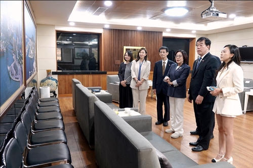 康裕成並親自導覽會客室內高雄港25年前後的空拍對照圖,讓初次訪高的杉山信雄驚艷於高雄城市蛻變之速,對高雄的港灣發展與城市建設深表讚嘆,雙方也約定未來持續深化互訪合作。