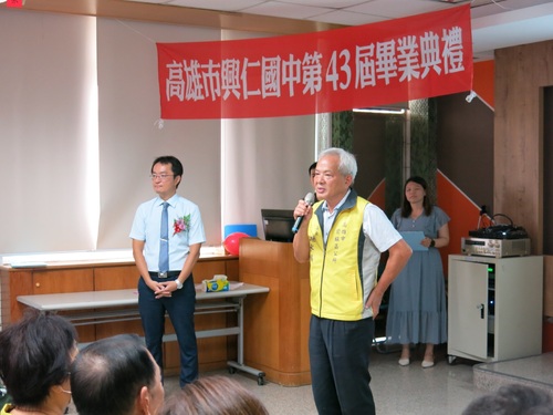 上午在校內舉行的頒獎典禮同樣溫馨隆重,前鎮區長謝水福、興化里長朱蘇來蔭、興仁里長張秋敏、鎮中里長湯淑貞,以及鎮南宮副董事長朱文璋、前鎮國小校長謝惠君、瑞祥國小校長陳炫佚和多位民意代表皆親臨會場,為畢業生獻上祝福。