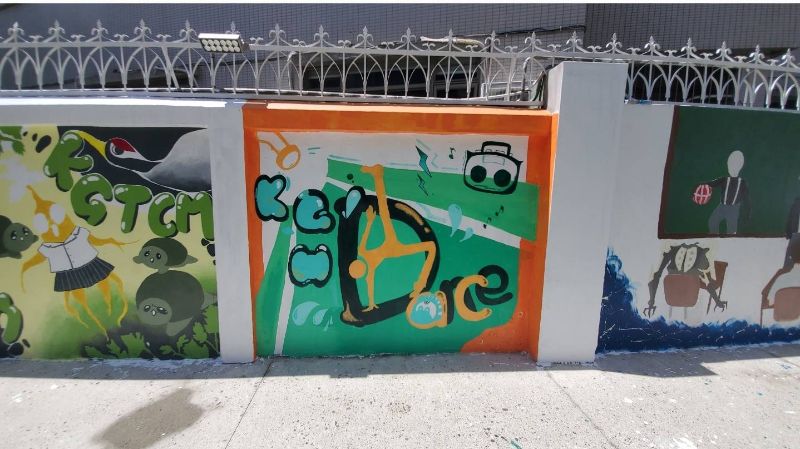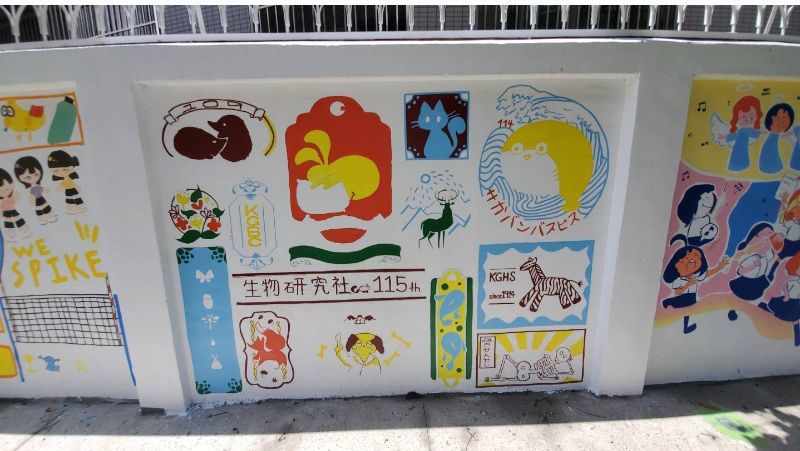 「每個社團都有屬於自己的風格與主題,我們希望透過這些創作,營造出屬於雄女社團的視覺語言。」黃怡茹表示,這是一次難得的創作實踐,也讓學生學會如何從構圖、配色到實際上牆,一步步實現創意。