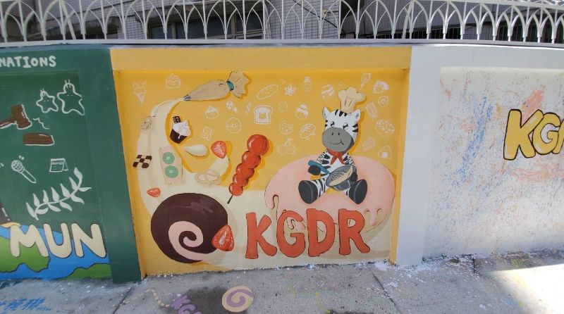 彩繪內容別具巧思,不僅展現社團特色與學生的創意美感,還巧妙融入互動元素。例如跳房子遊戲被繪製在通學步道地面上,讓人經過時忍不住跳躍一番,重溫童趣。這些畫作用色協調、構圖新穎,不僅為校園增添藝術氣息,也讓原本單調的通道變得生動活潑。