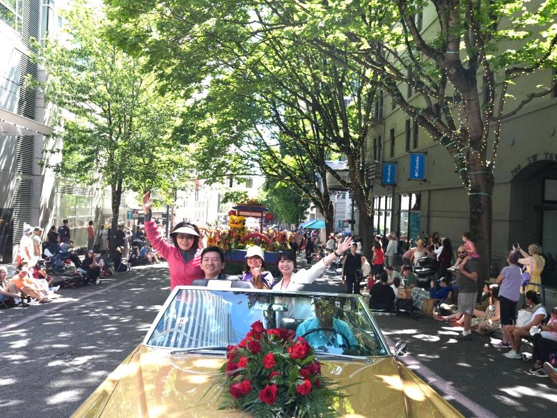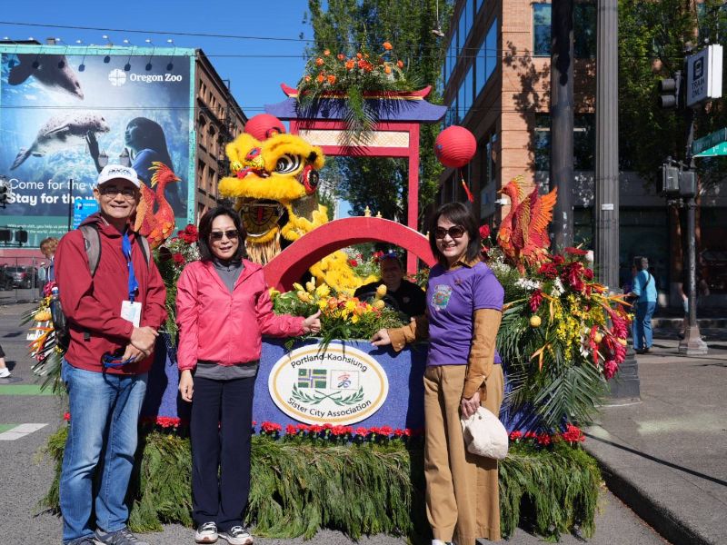 高雄與波特蘭自1986年締盟以來,長年推動文化、教育與體育交流,深厚友誼歷久彌新。在花車遊行中,樹德家商學生以鳳凰圖飾的長飄扇與鑼鼓展演東方民俗風采,象徵吉祥與重生,吸引大量觀眾駐足觀賞。康裕成到場慰勞師生,並致贈加菜金,感謝他們讓高雄在國際舞台發光。