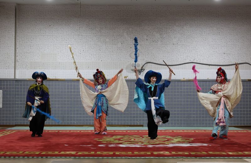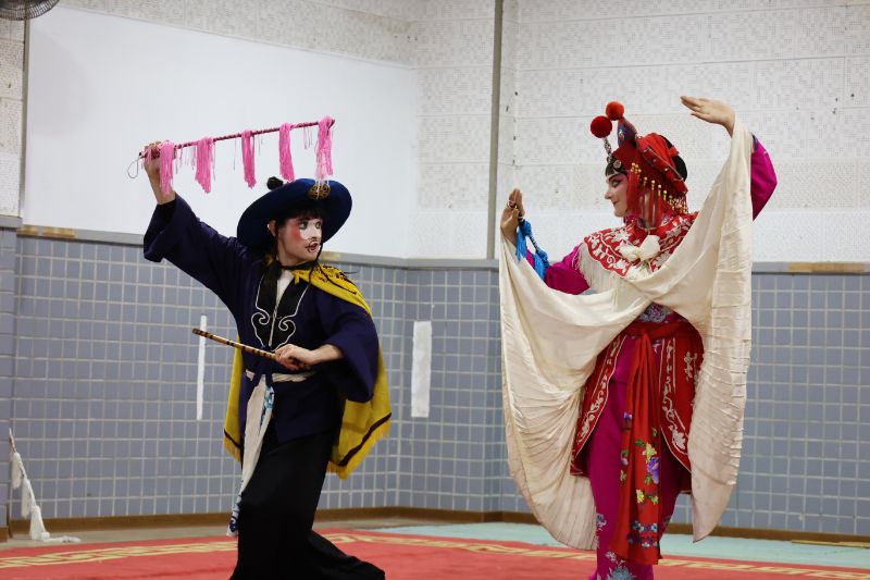 【漾新聞記者陳雯萍/綜合報導】國立臺灣戲曲學院與姊妹校法國巴黎第八大學再度攜手展開文化交流,十餘位師生來台展開為期兩週的戲曲體驗活動,從京劇、歌仔戲排練到水袖舞蹈與踩蹺訓練,最終還粉墨登場,演出《小放牛》及歌仔戲曲調、水袖身段表演,驚艷全場,贏得戲曲學院師生熱烈掌聲。