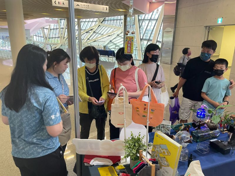 本次活動主打「校服翻轉計畫」,展示由7個寶特瓶再製成的運動服,引發關注。T恤手造館提供的環保束口袋印花體驗更吸引大小朋友排隊參加,孩子們親手創作海洋印花,讓家長與師長體會SDGs教育從穿著出發的實踐方式。透過創作,民眾不僅感受永續精神,也體驗設計與環保融合的生活趣味。