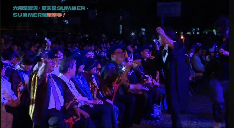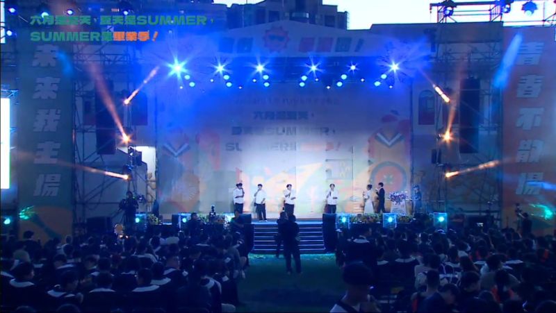 在隆重的畢業典禮結束後,循往例,也進行熱鬧的畢業晚會節目,由在校生與畢業生上台輪流「開趴」演唱,炒熱全場的氣氛,嗨到最高點!