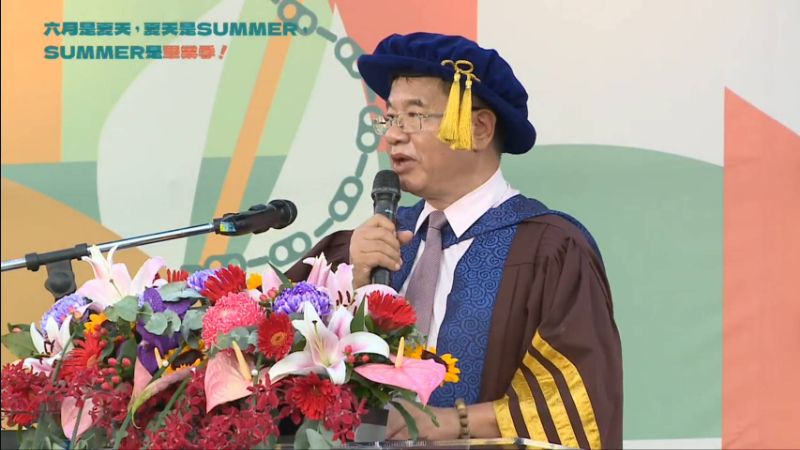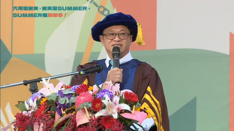 最後,他也以「時勢造英雄,會想者成英雄」,期勉全體畢業生,並祝鵬程萬里!