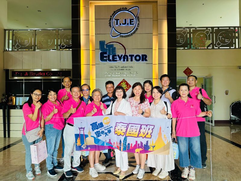此次隨團參訪的三家企業分別為泰基電梯股份有限公司、中榮精密鑄造股份有限公司與SUN GREEN富龍旅行箱公司,皆由泰國班學員經營。泰基電梯市占率超過五成,是泰國政府指定品牌;中榮精密鑄造榮獲2024年第三屆海外精品銀質獎;富龍旅行箱公司董事長王明宗深耕泰國40年,為泰國台商總會副總會長,更是高雄空大本屆畢業生代表,展現該校培育人才於國際發光的實績。