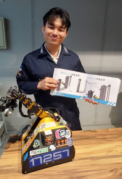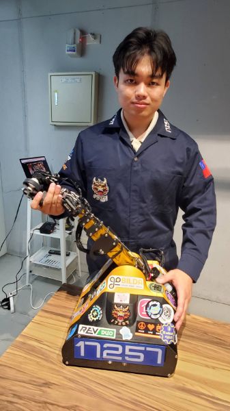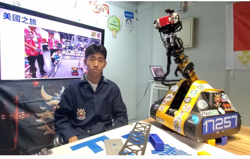 最近也以優異成績,透過特殊選材上榜國立宜蘭大學、聯合大學等四所公私立大學機械系,來自高雄市立志中學高三的蔡承宥,擔任隊長,負責機械結構,在四位成員中年紀最長,而今年18歲的他,也是能參加這項比賽的最後一年,能夠代表國家站上世界舞台,為國爭光,他覺得是無比的榮耀。