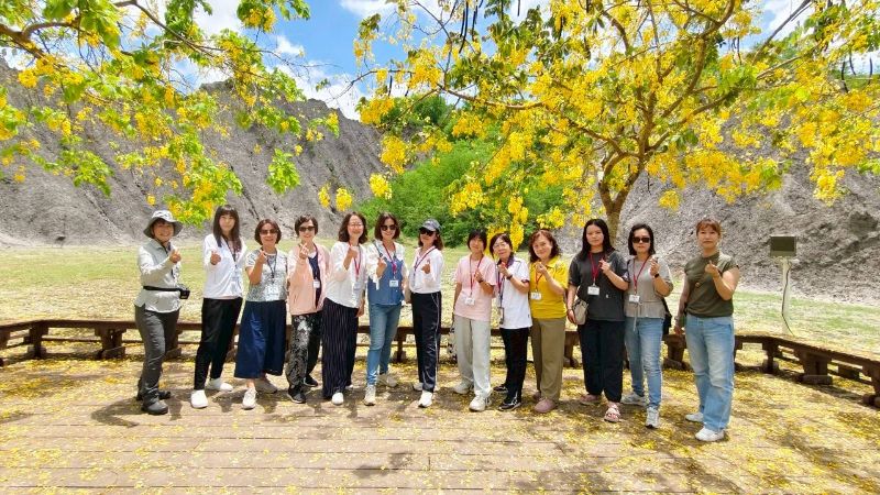 活動由理事長,本身也是高師大工教所博士的陳俊中親自率隊,他感謝USR計畫主持人高師大校長王政彥,攜手共同主持人黃琴扉副教授及其團隊協力籌劃,使行程緊湊有序又充滿深度。行程從月世界地景公園展開,在高師大隊輔引領下,參與者一早進行「身心療癒能量操」,隨著音樂伸展肢體、舒緩壓力,為旅程注入愉悅氛圍。