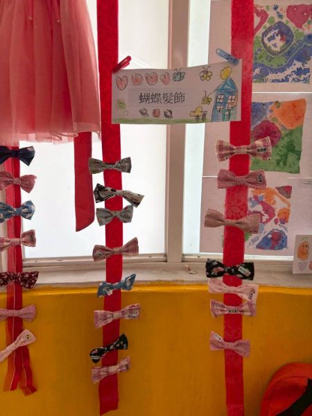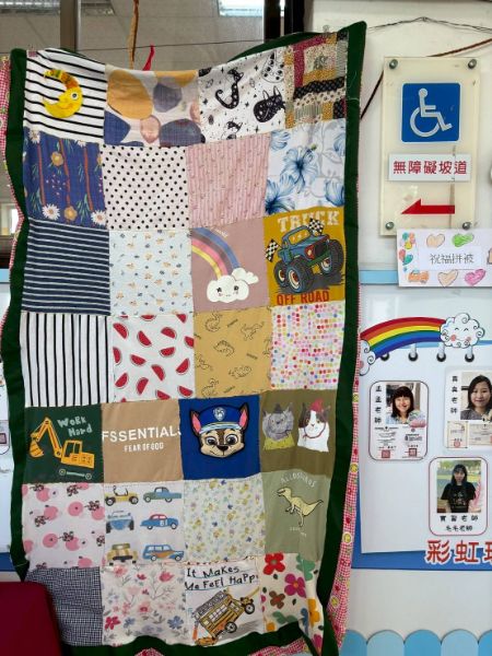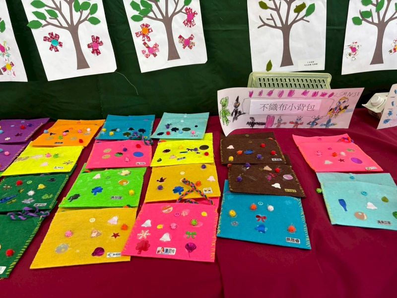 展覽現場精彩連連,不織布背包、碎布蝴蝶髮飾、飲料提袋、零錢包、筆筒、愛心針縫與「畢業祝福拼被」等作品琳瑯滿目,令人目不暇給。最驚喜的是,每位小朋友都變身解說員,親自為來賓介紹自己如何挑布、設計與縫製,一句「我自己縫的唷!」搭配燦笑,瞬間收服現場無數家長的心。