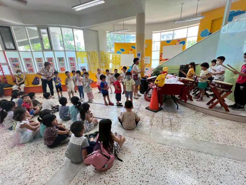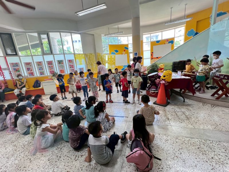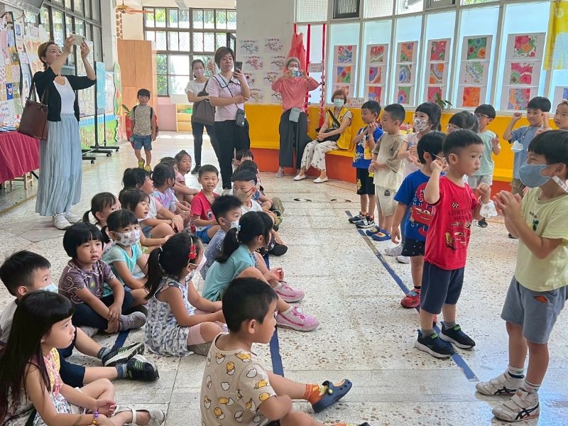 活動一開始由月亮班師生震撼開場,以太鼓與歌謠炒熱氣氛,瞬間引爆全場熱情。成果展由教師余文碧(小余老師)與王美娟(鯨魚老師)聯手策畫,課程橫跨觀察、染布、分類、縫製、拼貼與體能遊戲等多元面向,並在張采昀老師與陳鳳枝老師的協力下,讓孩子們從生活中發現「布」的魔法,在遊戲與實作中激發創意與解決問題的能力。