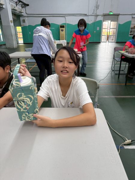 活動當日,學生們在寬敞明亮的活動中心專注學習,以縫紉機車縫出屬於自己專屬的水壺袋。活動中還有一位慈濟師姐志工,自費為每個孩子準備名牌,讓每個水壺袋都能有專屬標記,避免拿錯,處處充滿貼心細節。