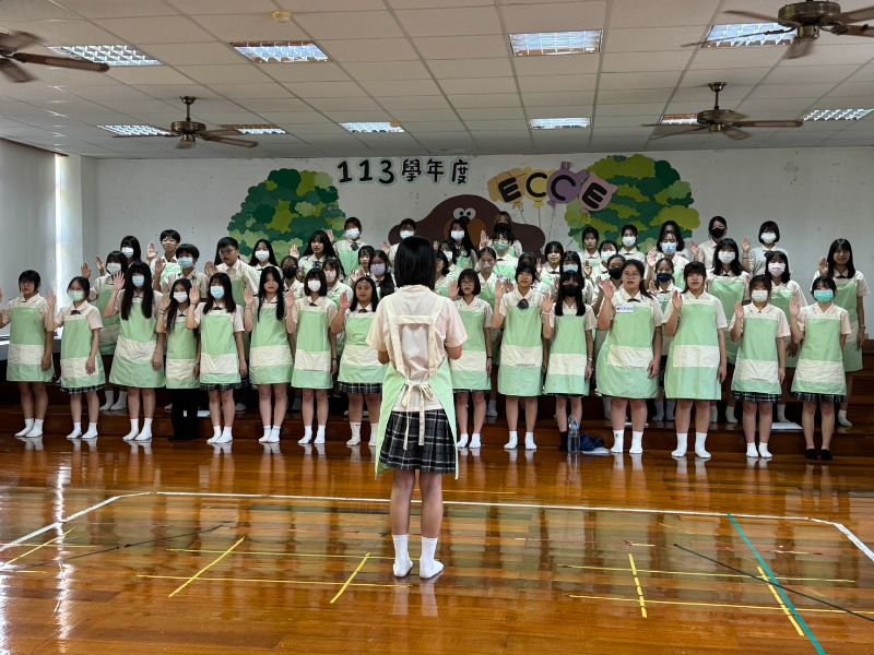 在正式上工前,幼保科舉辦「實習行前說明會」,學生身著整齊制服,齊聲宣誓「發揮教保專業、捍衛幼兒權益」,不只是口號,更是將愛與責任內化為行動的承諾。這場儀式象徵從校園理論邁入現場實務的關鍵轉折點,讓學生在莊嚴中啟程。