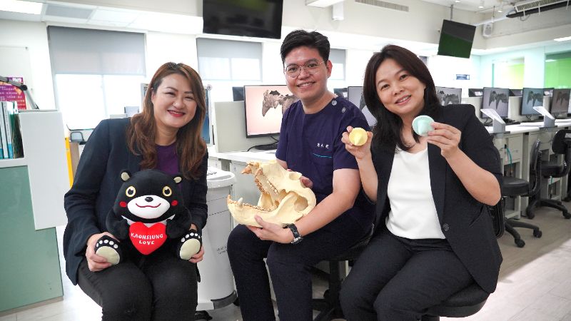 促成這場合作的起點,來自壽山動物園明星「臺灣黑熊」的周邊文創開發構想。園方邀請樹人牙體技術科協助製作棕熊與黑熊牙齒造型的擴香石,學生從掃描、開模到成型一手包辦,不僅展現技術實力,更激發出「如果未來黑熊需要假牙,能否由我們製作?」的奇想與熱情,讓這場合作從點子變成行動。