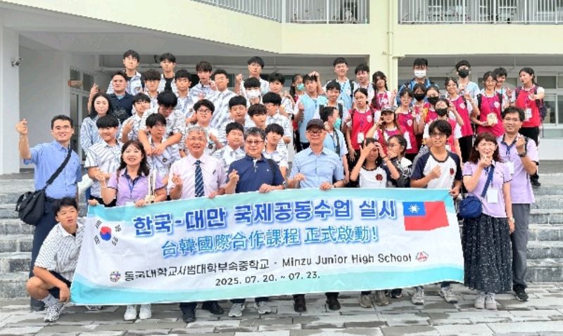 【漾新聞記者陳雯萍/高雄報導】昨天(7月21日),高雄市民族國中迎來來自韓國東國大學附屬中學的師生一行23人,在校長朴奎泰率領下展開為期一日的跨國教育交流。民族國中校長洪瑞鍇與行政團隊全程接待,透過藝術創作、人文導覽、信仰巡禮及濱海行程,讓兩校學生在文化交會中打開心扉,譜寫出一段難忘的台韓友情記憶。