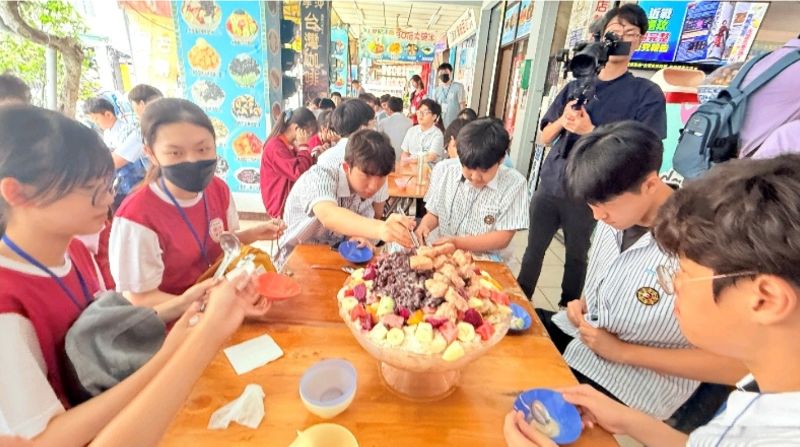 午後行程來到中山大學旁知名冰店,享用4大碗巨型剉冰,五彩繽紛配料鋪滿冰面,韓國學生紛紛驚嘆、搶拍與分食,現場笑聲不斷。隨後搭乘渡輪前往旗津,海風拂面、港景壯麗,學生站在甲板靜靜感受高雄的港都魅力,這段航程成為心中難以抹去的海洋記憶。