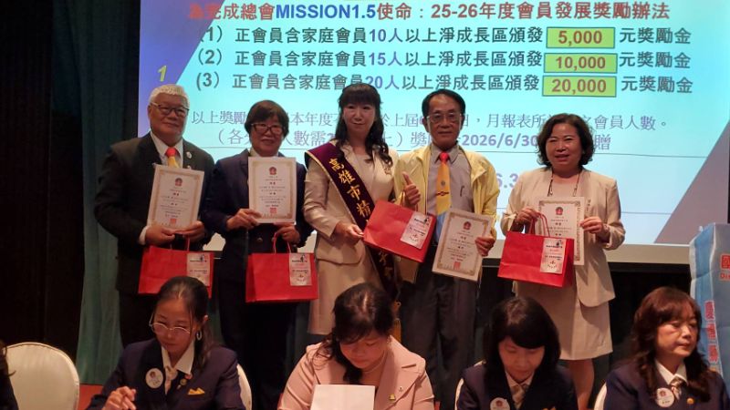 總監李慶春在致詞時,也期許精英獅子會能達到全區最高的目標,人數成長超過20人,就可以獲得特別獎勵。新會長黃敬琳當場宣布「21人」。李慶春希望大家在這方面能多加把勁,讓E5區能在全國18個複合區,不再吊車尾,而能揚眉吐氣。
