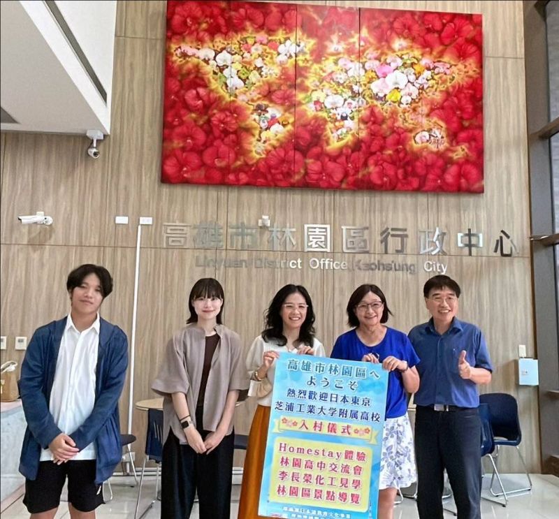 【漾新聞記者陳雯萍/高雄報導】林園高中與林園區公所、林園區里長聯誼會合作推動國際交流,7月23日迎接來自日本東京芝浦工業大學附屬中學22位學生,於林園區公所活動中心舉行熱鬧的入村儀式,展開一段為期多日的跨國文化互動之旅。此次活動共募得11戶在地家庭提供寄宿,象徵「林園國際文化交流村」計畫正式起步。