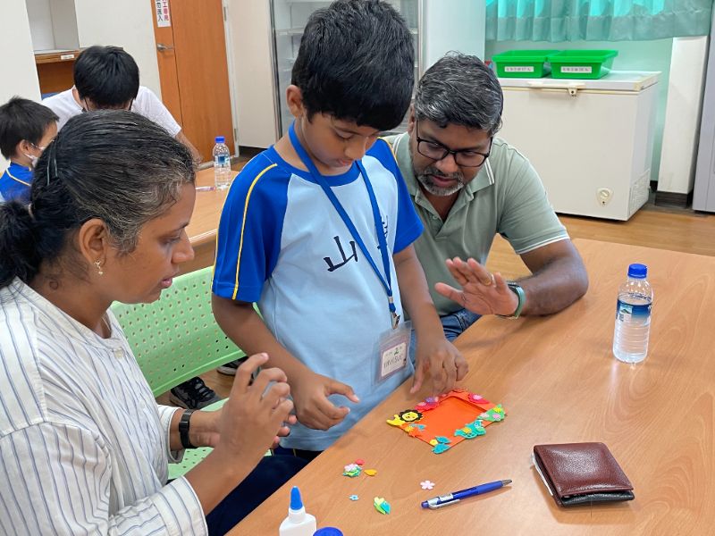 剛從附幼升上小一的顏正皓興奮地說,很感謝校長與會長親自為他戴上「有禮帽」,他一定會努力做個更有禮貌的孩子。林加恩則開心分享,能與父母一起完成幸福相框,將全家合照放進去,讓開學日更加難忘。