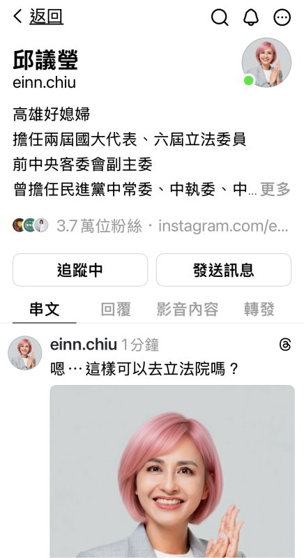 漾新聞|陳其邁粉紅頭貼掀話題 邱議瑩跟進喊:這樣能進立法院嗎?