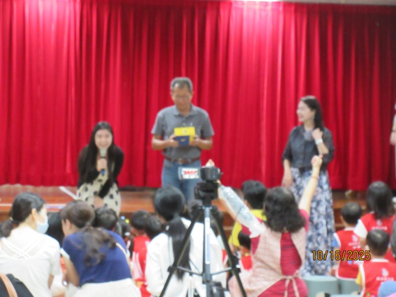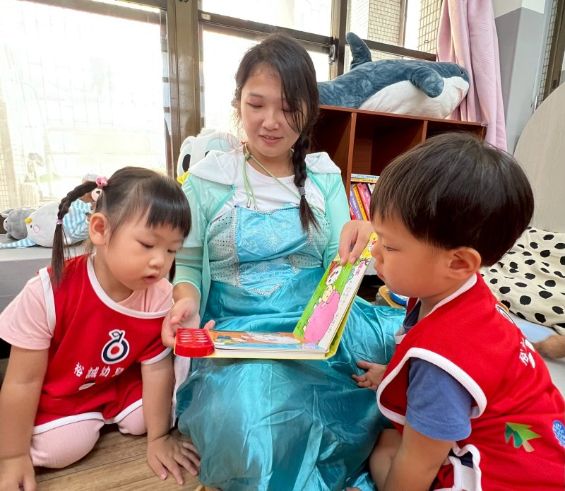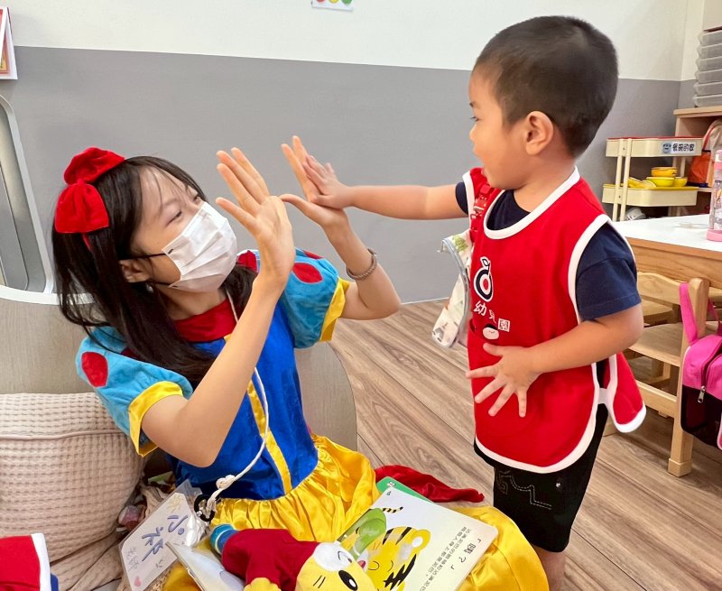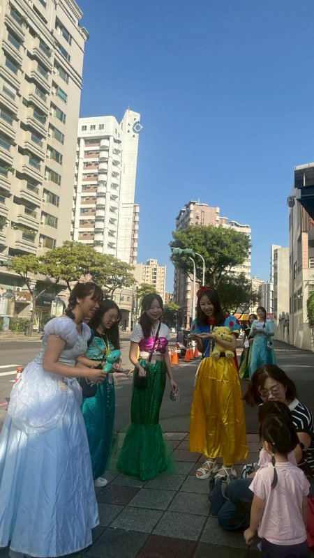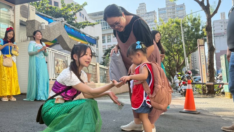 活動現場如夢似幻,實習老師兵華恩、陳妍、何顏安、錢郁均、張伃岑與劉穎祁化身白雪公主、艾莎、貝兒、愛麗兒、仙杜瑞拉與茉莉公主,帶來活潑短劇〈最棒的就是我〉。孩子們全神貫注、隨節奏拍手律動,笑聲此起彼落,連家長也被童趣氛圍感染,臉上滿是笑意。