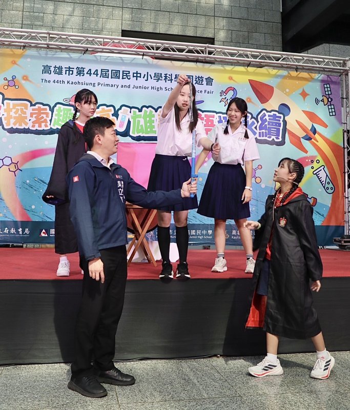 教育局長吳立森在參觀開幕時,也特別停留於五福國中攤位聆聽學生解說,並親自闖關體驗。他肯定地說,五福國中師生能將得獎科展作品轉化為富含知識性與趣味性的教學遊戲,不僅落實寓教於樂精神,更展現學校科研成果能從實驗室走向生活應用,「這樣的創意非常值得肯定!」