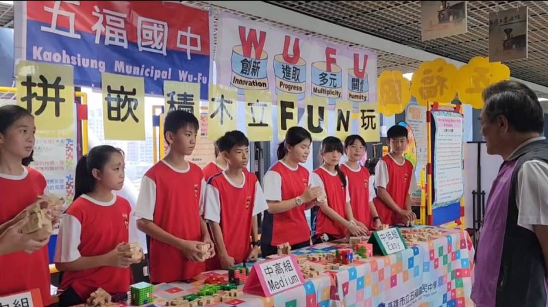 【漾新聞記者陳雯萍/高雄報導】第44屆國民中小學科學園遊會,正於國立科學工藝博物館盛大展出,高雄市多所學校師生熱情參與,展現豐碩的科研成果與創意巧思。其中,五福國中師生以科展研究為基礎設計的「數學積木拼嵌實驗」,將抽象的數學原理轉化為趣味闖關遊戲,並以雙語呈現,成為現場最吸睛的攤位之一,連教育局長吳立森都親自下場挑戰,讚嘆「科學遊戲真好玩!」