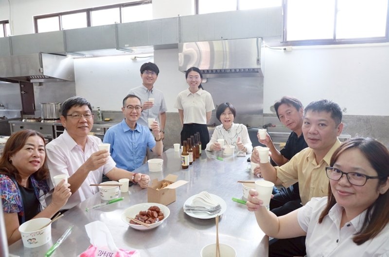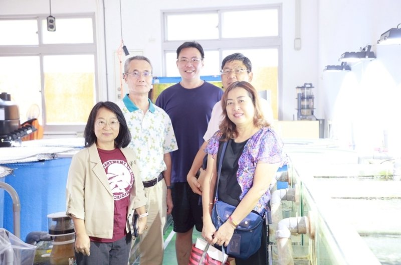 在參訪中,高科大水產養殖系展示以光合菌取代孔雀綠的友善養殖技術,配合「魚電共生」政策發展智慧管理系統;水產食品科學系則展出多樣保健與機能性產品,包括蝦捲、香腸、啤酒等,展現從食品加工到市場化的完整鏈結。