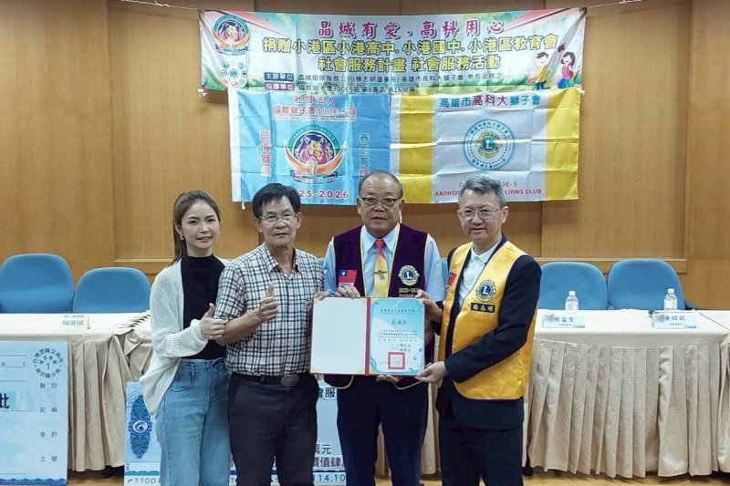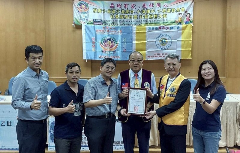 【漾新聞記者陳雯萍/高雄報導】以行動關懷教育、用愛灌溉未來!由晶城環保服務公司、高雄科技大學獅子會聯合主辦、國際獅子會300E-5區指導舉辦的「晶城有愛、高科用心」社會服務捐贈儀式,今(22)日上午於高雄市立小港高中隆重登場。活動結合企業、教育與公益能量,為小港地區學子帶來滿滿祝福與希望,現場氣氛溫馨感人。