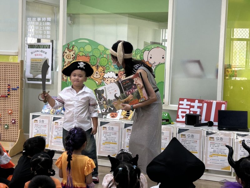 鼓山圖書館主任劉秀珍表示,萬聖節是拉近圖書館與社區、學校關係的最佳橋樑,這次合作更使用綠書房歷年表演道具,達到資源再利用,同時讓孩子在書香氛圍裡發揮創意,「透過趣味學習,閱讀力量才會深植孩子心中。」