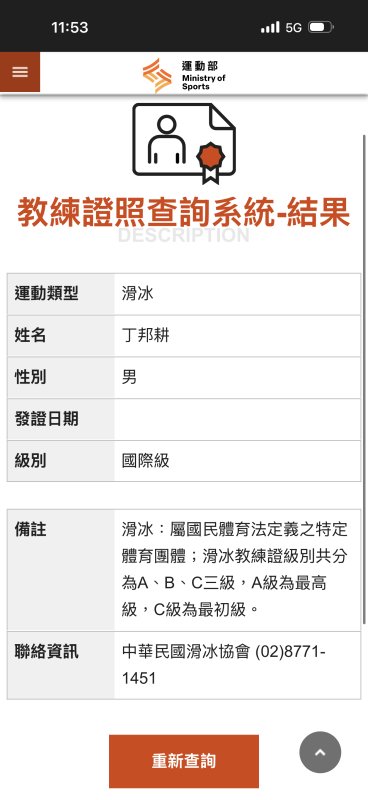 陳麗娜同時也出示今年114年第47屆中正盃全國溜冰賽的秩序冊,當中,有一位桃園的領隊與管理,一位高雄市的選手、一位管理;還有一位金門縣的選手。