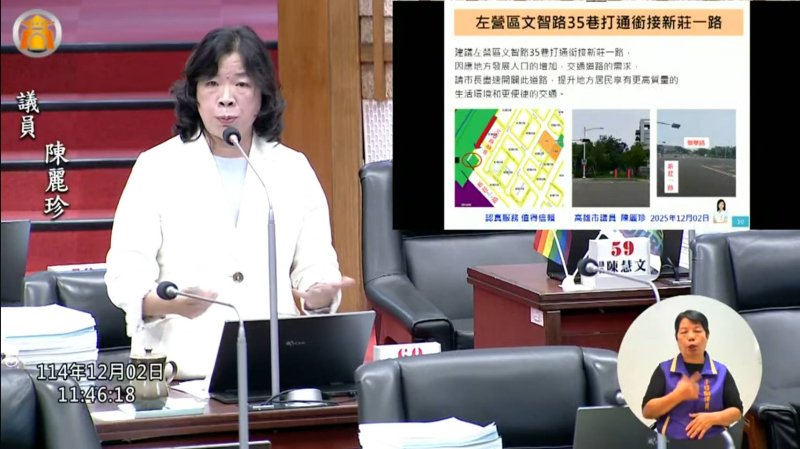 至於地方爭議多年的「文智路35巷打通接新莊一路」案,陳麗珍表示,該區居民六年來持續陳情,巷道緊鄰新莊一路卻無法通行,造成學童通學動線需繞行,極為不便。市長陳其邁回應,確實已接獲多方反映,但因靠近翠華路,安全性需審慎評估。他強調,將在一個月內完成安全性檢討,並回覆議員。