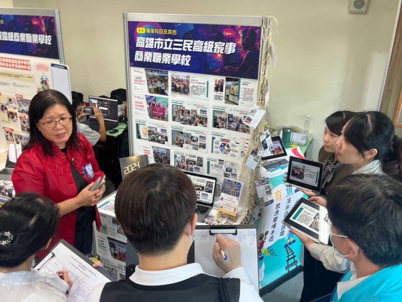 在校長王雪娥帶領下,三民家商以循序推動的「數位奠基—AI領航」模式持續拓展教學能量。王校長表示,技職教育的轉型已從工具操作走向AI賦能,學校透過教育部數位精進、科技輔助自主學習、高職優質化等計畫升級網路、載具與教室設備,使學生能在安全有效的智慧環境中探索專業技能。