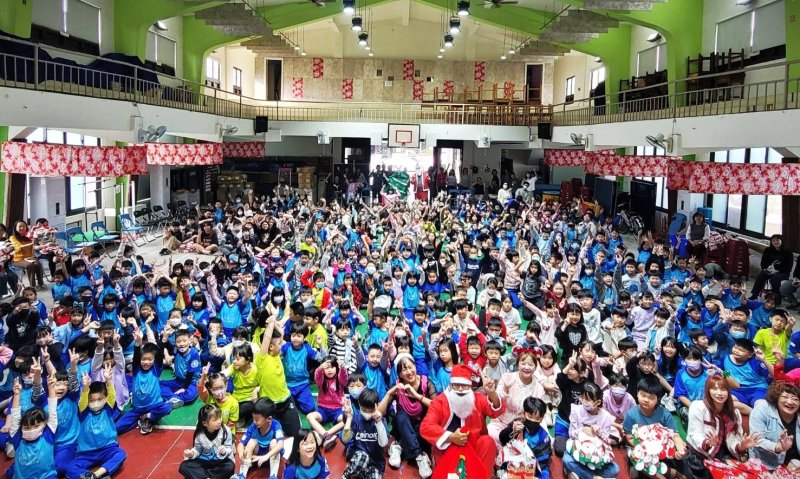 鍾易達校長特別感謝家長會長林慧君號召家長與志工夥伴,為孩子包裝一份份精美的小糖果,更暖心的是全校教職員工也都收到耶誕老公公的禮物。朝會由佳美教會雪新心牧師帶來客語詩歌祝福:身體健康有平安,心情喜樂有盼望。