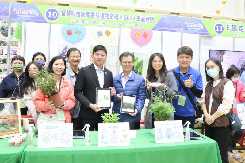 其中,大樹區興田國小、五福國小與鳳山區中山國小以「智慧科技解開香草植物密碼 × SEL × 五感體驗」為主題發表成果,成為現場亮點。興田國小校長駱怡如指出,學校周邊自然資源豐富,透過數位科技引導孩子重新認識植物,讓學習從生活出發。