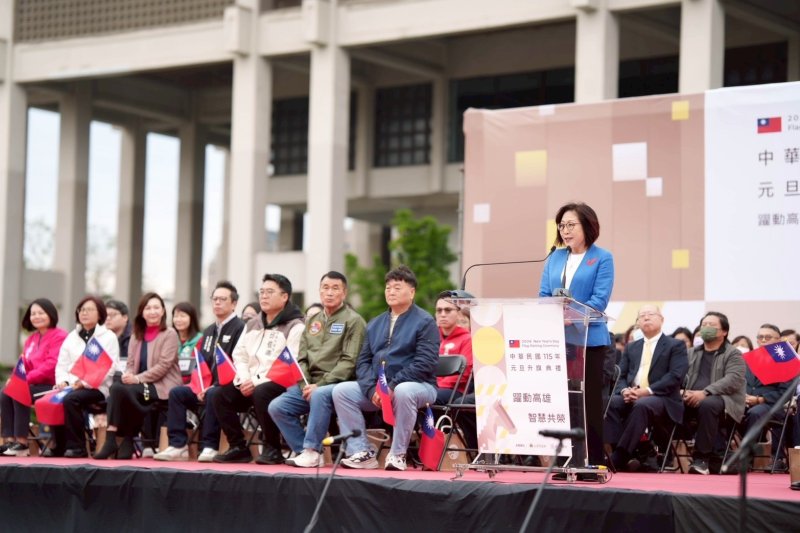 康裕成致詞時表示,元旦升旗不只是年度儀式,更是回顧與前瞻的時刻。她指出,這些年在府會合作下,高雄在智慧治理、城市創新與公共建設上逐步累積成果,城市樣貌持續翻新。站在升旗現場,她與市民一同迎接新年,內心充滿身為高雄人的光榮與責任。