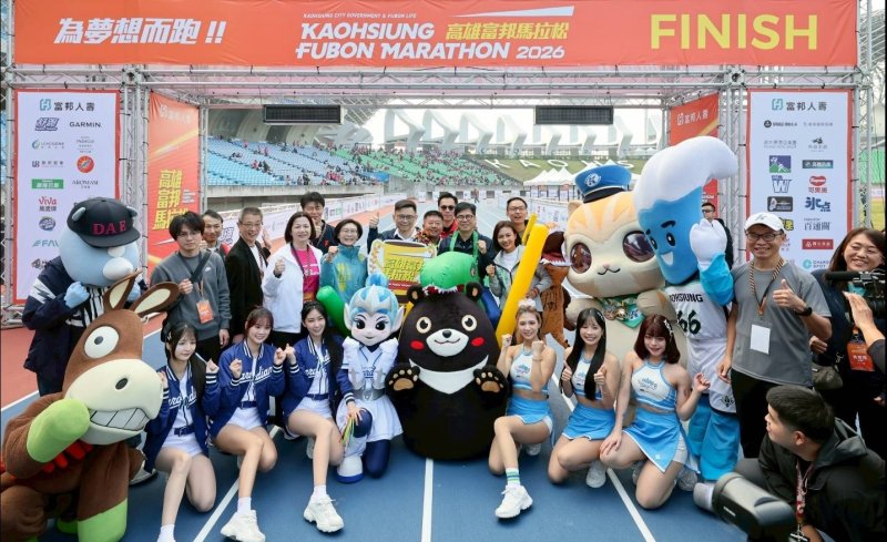 【漾新聞記者陳雯萍/高雄報導】一年一度的城市路跑盛事再度點燃高雄熱情。由高雄市政府運動發展局主辦、富邦人壽冠名贊助的「2026高雄富邦馬拉松」,今(10)日於國家體育場熱鬧登場,首日由5公里休閒組及寵物路跑嘉年華率先開跑,超過200隻恐龍裝扮選手齊聚田徑場奔跑競速,加上吉祥物與啦啦隊趣味對決,讓國體場瞬間化身最歡樂的城市派對。