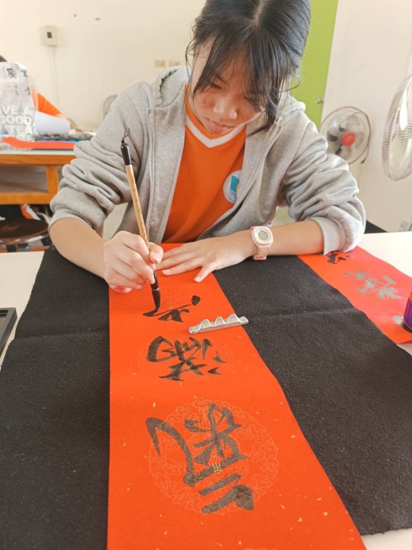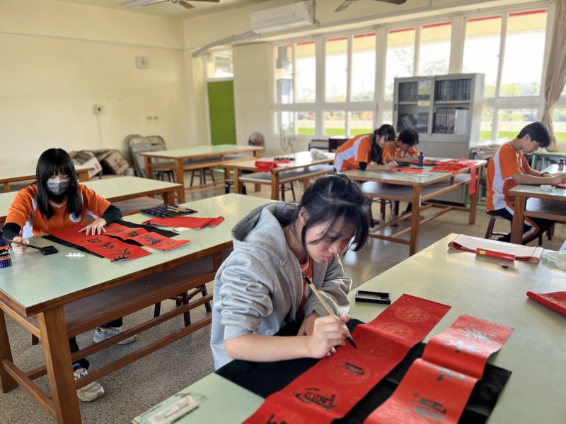參與創作的學生林宇智分享,大家提前數週準備春聯,雖然辛苦,但能以擅長的技能幫助他人感到非常開心;張芮菾則說,從仰望學長姐到親自完成作品,讓她對自己的成長更有信心;陳沁愉也表示,從國中才開始學書法,如今能現場揮毫,看到民眾選購作品,內心充滿成就感,也希望把祝福送給更多人。