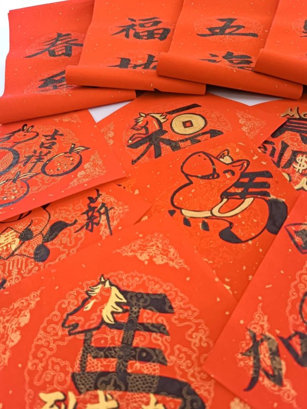活動籌備期間,學生利用下課與午休反覆練習與創作,只為在義賣當天呈現最好的一筆一畫。美術業務承辦教師邱鈺芳指出,從構思、試作到完成,每件作品都歷經多次修正,過程中可見學生主動投入、發揮所長,義賣作品融合新春祝福與馬年特色,象徵願意無條件回饋社會的心意。