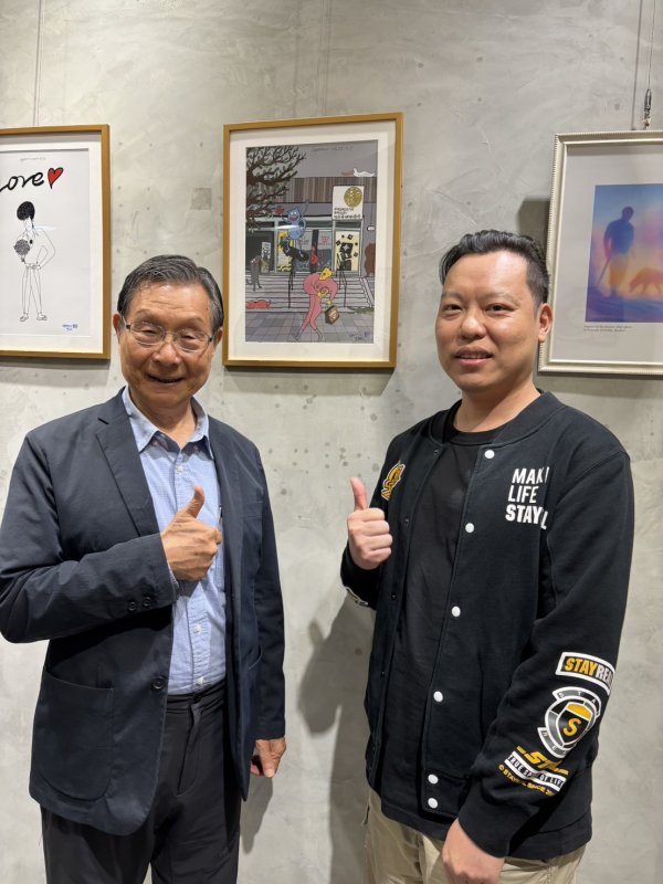 吳彥霖的作品「雲彩」,回歸藍天白雲的純粹瞬間,提醒人們在日常中感受微小卻真實的美好;陳明億以插畫形式描繪「袋袋狗、狐狸人與朋友們開心上街」、「阿明送花給心上人」,童趣畫面中蘊含對生活溫度的想像與幽默。