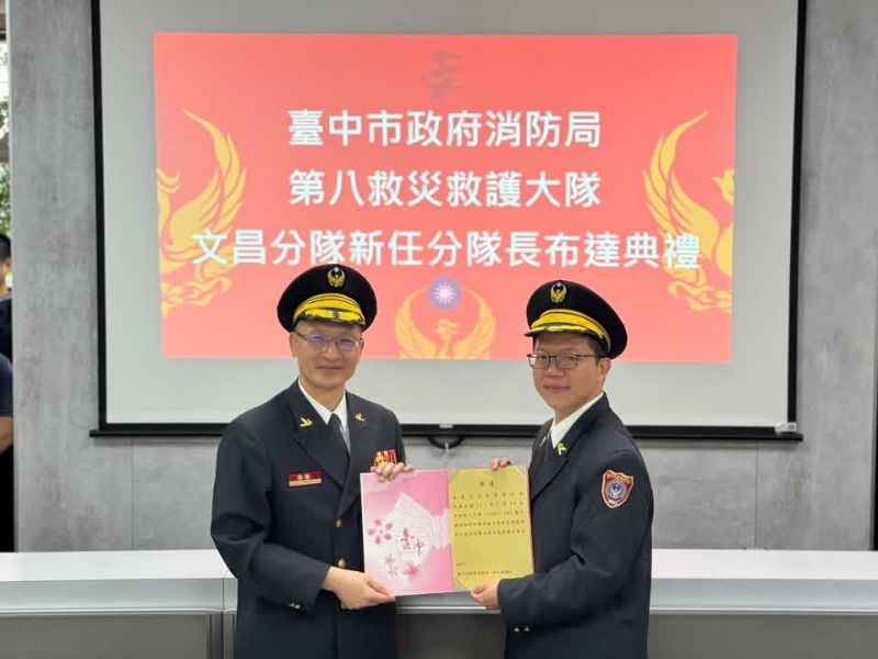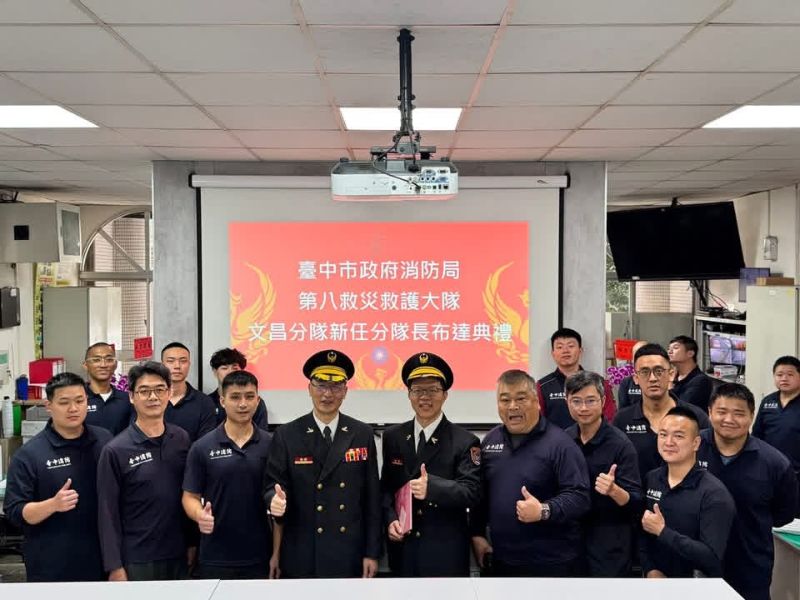 【漾新聞記者張茗富/台中報導】臺中市政府消防局第八大隊文昌分隊日前舉行分隊長佈達典禮,在第八大隊大隊長呂鴻隆及各級長官、消防與義消同仁及地方貴賓見證下,由林家全正式接任分隊長,現場氣氛隆重溫馨,象徵責任傳承與使命延續,也為分隊未來發展揭開新頁。