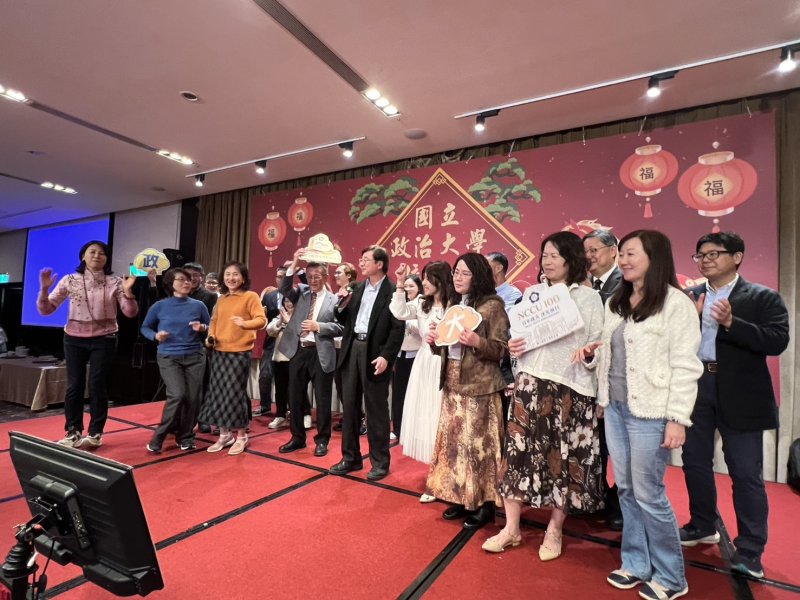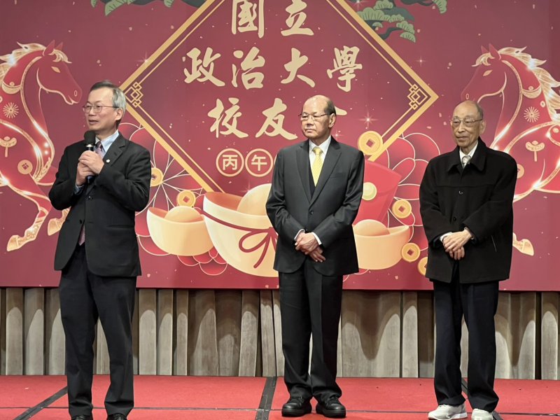 今年團拜更出現歷史性畫面,由政大校友會名譽理事長張京育校長、校友會理事長鄭丁旺校長,以及新連任的校長李蔡彥三人連袂出席,三任校長同台相聚,引發全場熱烈掌聲。這一刻不僅象徵政大精神薪火相傳,更展現校方與校友會攜手並肩的緊密關係,帶領全球政大人邁向下一個百年新篇章。