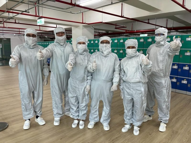 在企業人員引導下,國立高雄大學師長們依產線規範換上無塵衣、防塵帽與專用鞋,並依序通過黏塵滾輪與空氣除塵設備後,進入產線觀察區參觀智慧製造流程。透過透明隔離區,可以清楚看到自動化設備與製程監控系統的運作情形。現場也有教授笑稱,穿上無塵衣的畫面讓人回想起過去在產業界工作的經驗,而從大學教室走進企業產線的場景,也讓產學合作變得更加具體而真實。
