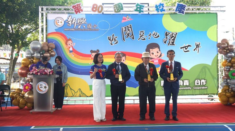 隨著趣味競賽與全長跑活動熱鬧展開,校友與在校生彼此互動、笑聲不斷,彷彿搭乘時光隧道重返童年。這場八十週年盛會,不只是慶祝與回顧,更是一段情感的凝聚與再出發的宣言。新興國小以深厚底蘊為基石,正以嶄新姿態邁向未來,持續在教育的天空中飛騰不息。