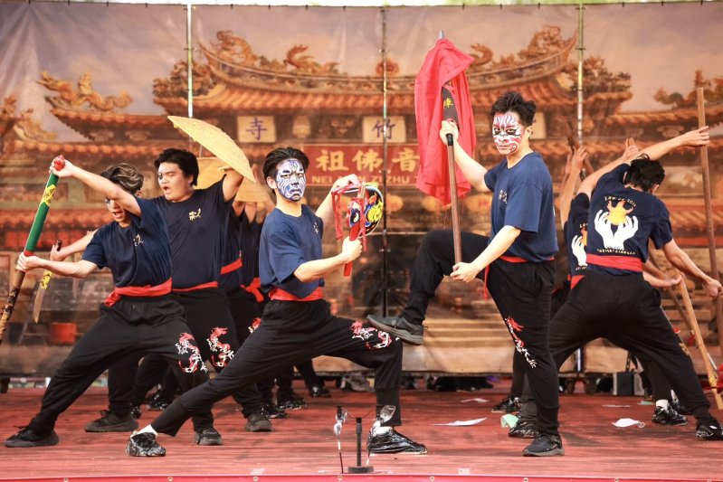 國立臺南大學以「過埕演武、遊庄繞境」為主軸,透過蜈蚣陣與雙龍捲水等動態陣法,重現廟埕文化記憶;龍華科技大學則結合新武術、舞龍與鼓陣,氣勢磅礡,並邀請宋江陣國寶何國昭入陣演出,展現文化傳承的深厚底蘊。