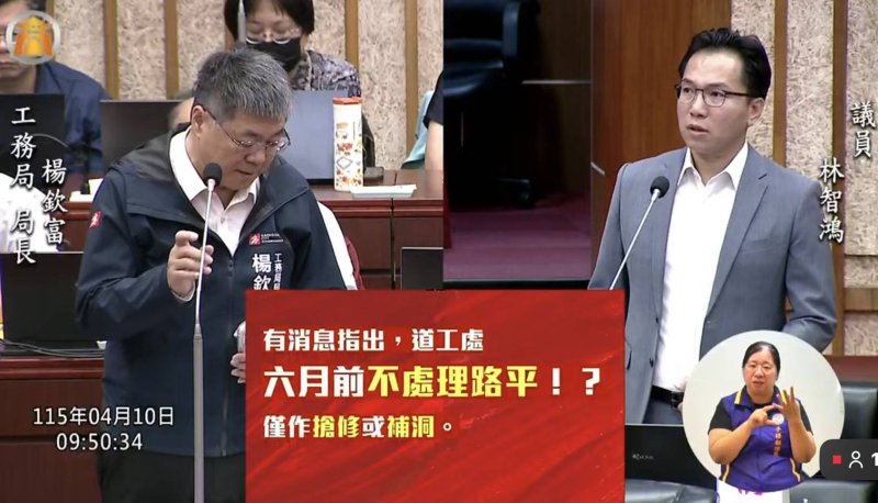 林智鴻表示,市府先前曾回應將優先施作交通量大或具立即危險性的工程,但標準模糊,如今更傳出僅能進行補洞與小型修繕,等同「路平工程暫停」。他指出,市民近期已明顯感受道路補丁增加,反映第一線維護能量受限,工務單位亦面臨預算與供料雙重壓力。